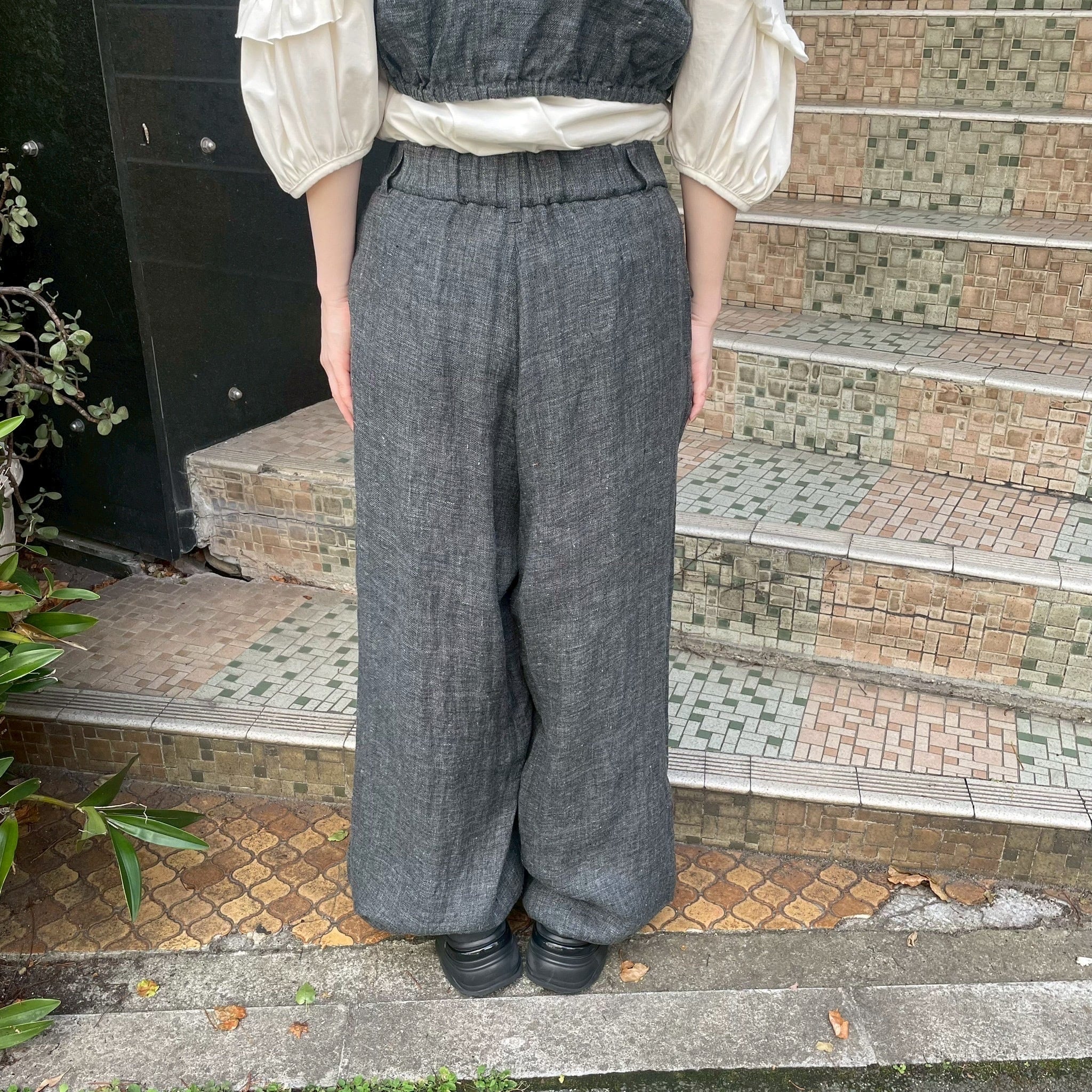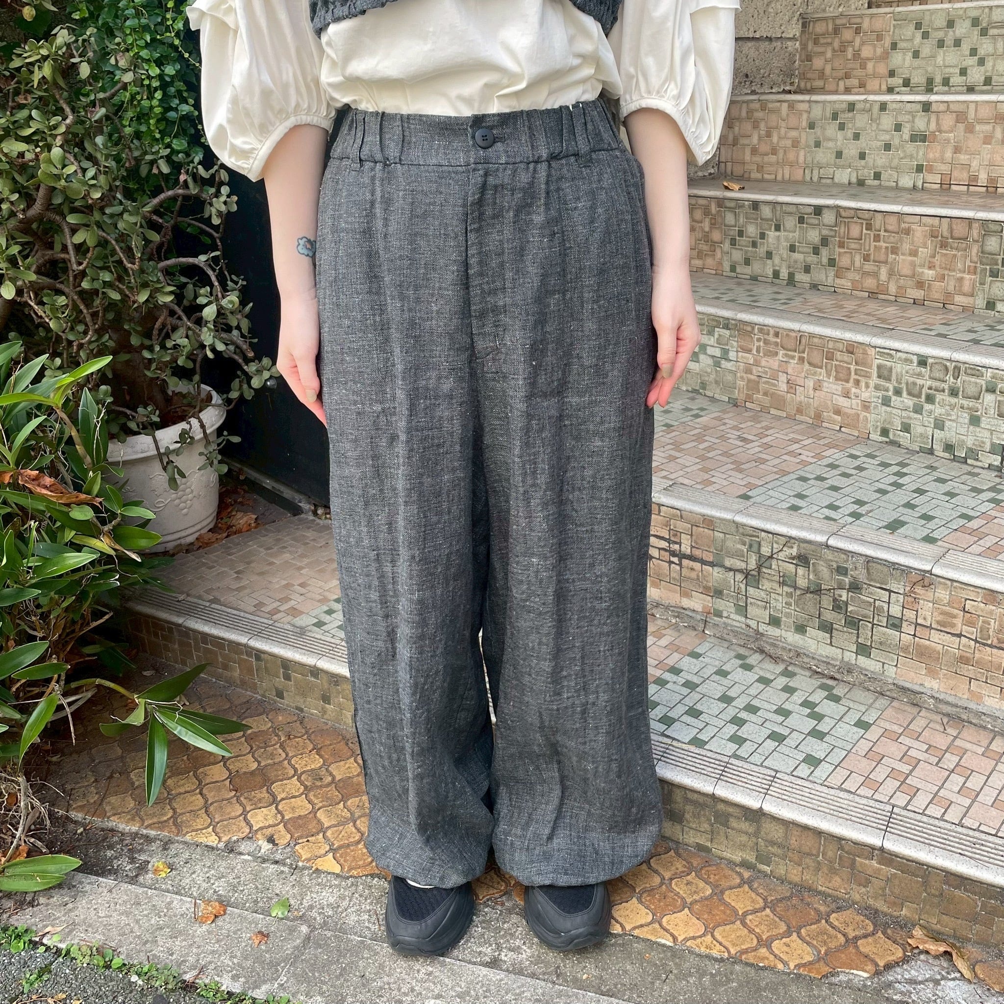 クラシカルな表情を持つ、ざっくりとしたリネンパンツ。