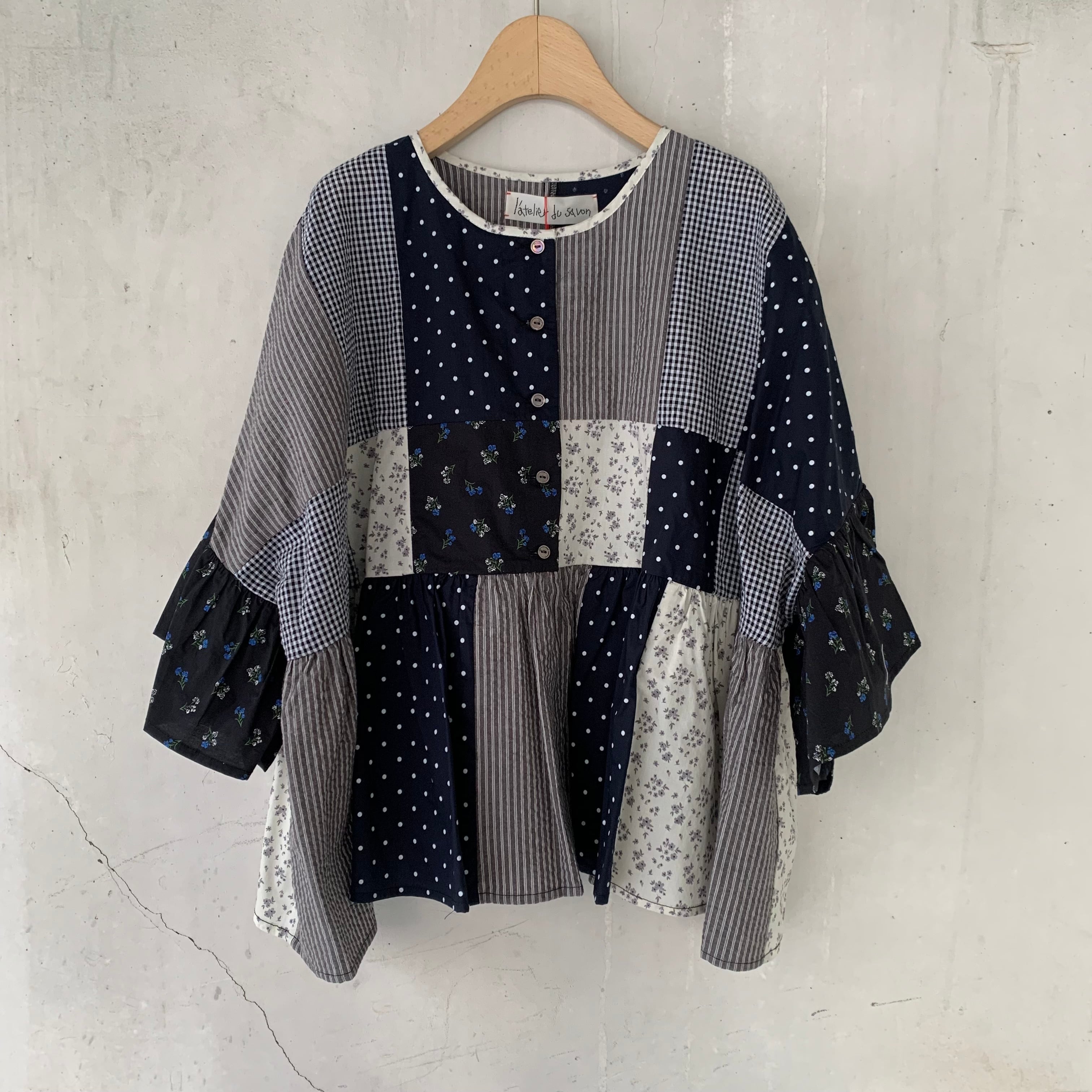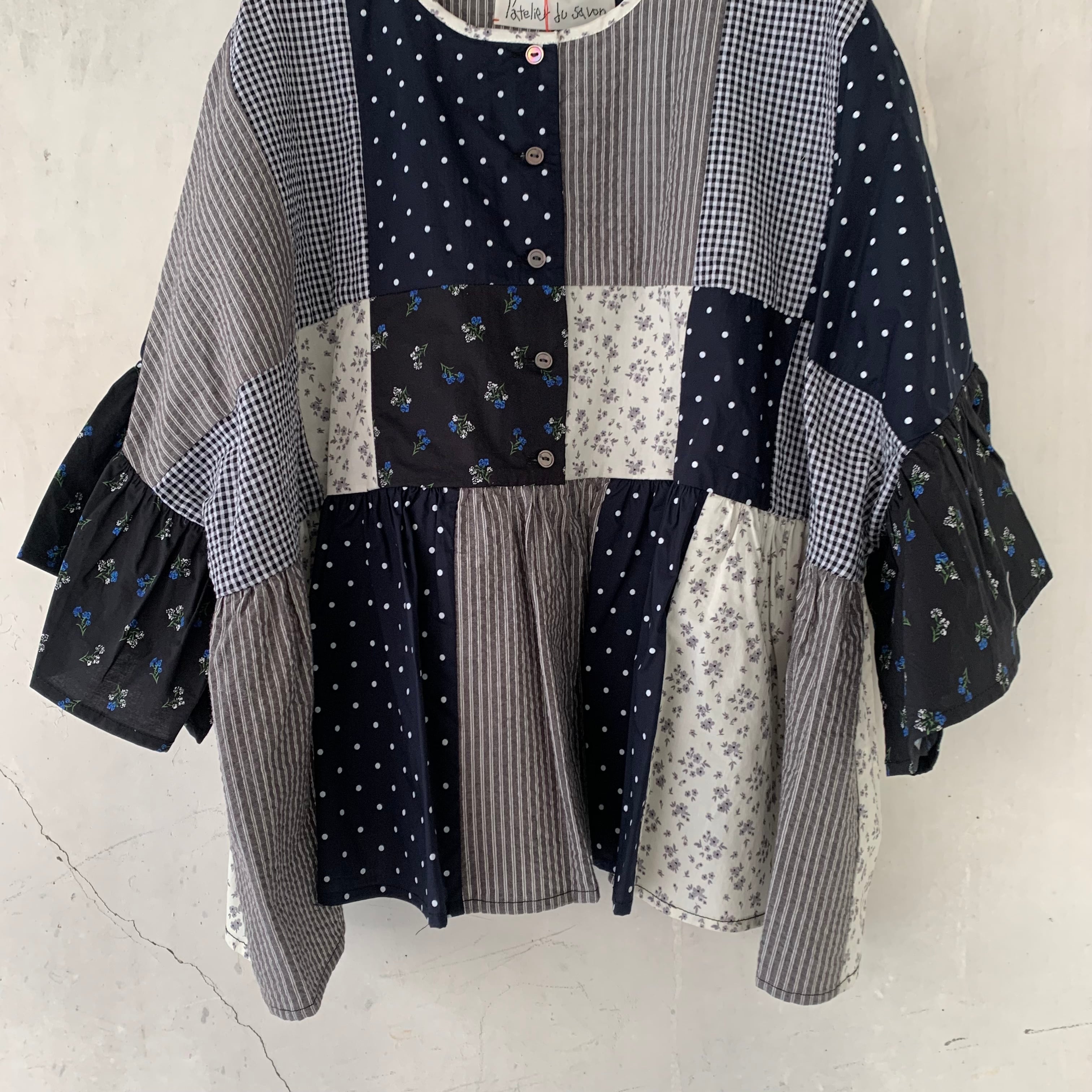 l'atelier du savon/little garden パッチワークブラウス
